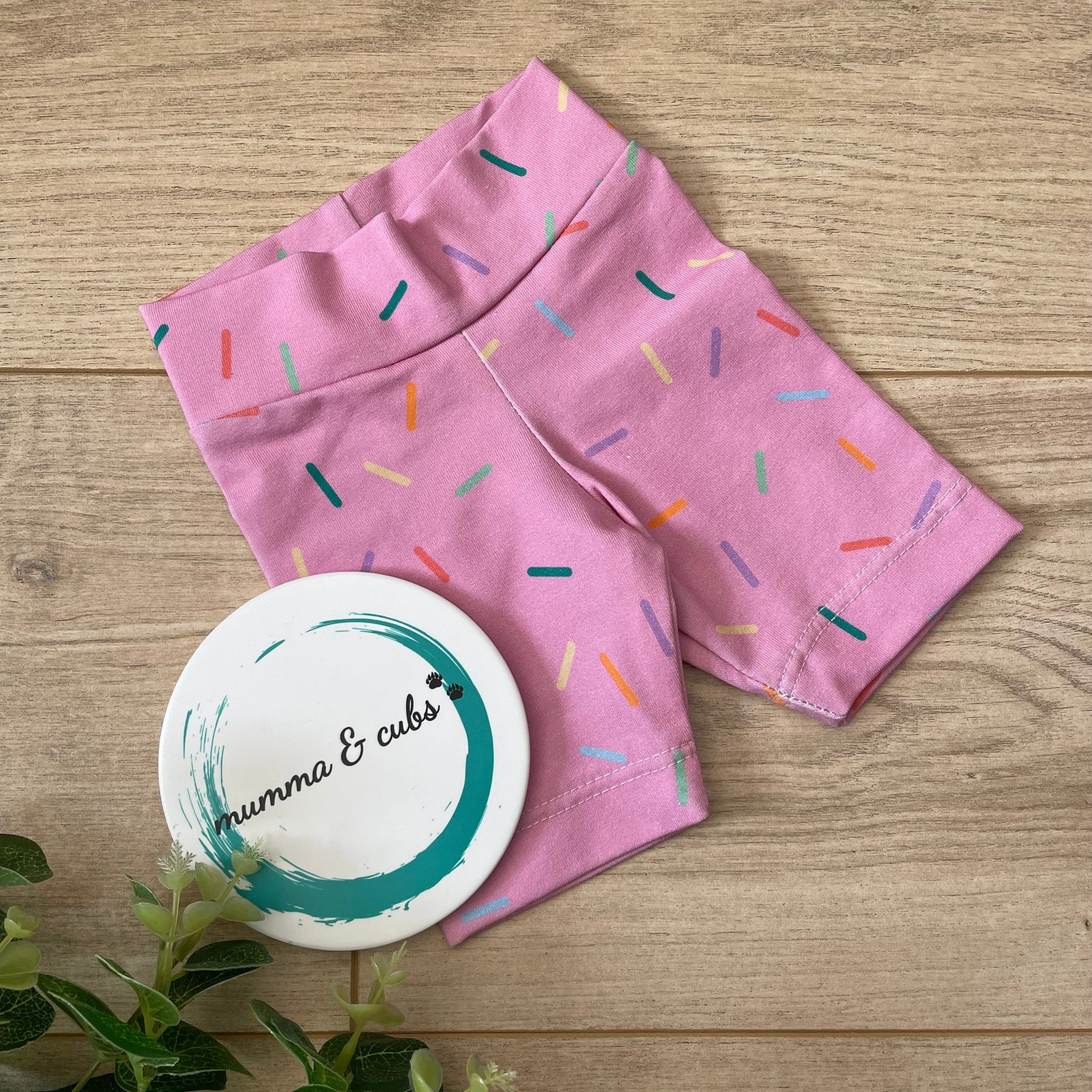 Size 0-3m and made in a comfortable cotton jersey in the pink sprinkles design.